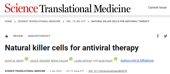 2022年,《科学转化医学》(Science Translational Medicine)杂志发表文章表示,自然杀伤NK细胞是抗病毒的天然武器。基于NK免疫细胞的免疫疗法正被探索用于治疗传染病,包括病毒感染。